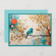 Blue Songbird On Golden Leaves Tree Branch Postcard