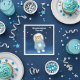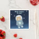 Set the scene for a cosmic baby party with this whimsical blue napkin showcasing a cuddly astronaut bear floating gently beneath twinkling stars, accompanied by the joyful phrase "Mission complete: It's a boy!" The soft blue tones create a soothing atmosphere, while the playful galaxy design adds depth and charm, making it ideal for nursery space themes. This delightful design brings a unique and memorable touch to any boy's celebration, ensuring a fun and enchanting outer space adventure for all guests.