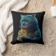 Blue Space Cat Astronaut Holds Glowing Module Cushion