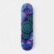 a decorative abstract artwork of blue mandalas floating like stars through space in blue and purple colours on a skateboard