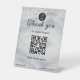 blue sparkle add logo text Q R code scan here Pedestal Sign