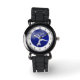 Any girl who loves gymnastics will love this watch! It features a silver silhouette gymnast in a handstand motion at the centre. Above the figure is a spray of silver stardust. The images are placed on a royal blue background. Numbers placed on a white outer circle make the watch easy to read.