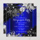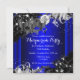 Blue Silver Masquerade Birthday Party Invitation. Pretty silver and black diamond mask & feather jewels. Please note: All flat images! Use for any age.