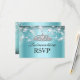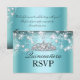 Blue Sparkle Tiara & Stars Quinceanera RSVP Card