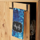 Blue sparkles Abstract Frozen bubbles Monogram Tea Towel