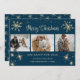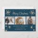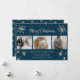 Custom blue photo Christmas cards featuring snowflakes and stars on the front and sparkly snowflakes at the back. Easily personalise these blue photo Christmas cards with your images, text and a family name.