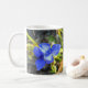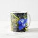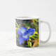 Eye-catching brilliant blue spiderwort flowers decorate sturdy ceramic mug. Ideal gift idea for enjoying a refreshing cup of coffee or tea! Travel mug, stein and two sizes with colour choices also available.