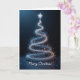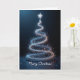 Celebrate the season with this luminous Christmas card featuring a stylized tree made of swirling blue and white sparkles. A radiant star crowns the spiral design, set against a deep, dramatic background that enhances the glow. The graceful “Merry Christmas” message adds warmth and charm, making this card perfect for sending peace, joy, and wonder to loved ones.