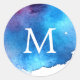 Blue Splash Watercolor Wedding Monogram Classic Round Sticker