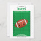 Personalise these football birthday invitations with your player's favourite photo. The football trading card design features a helmet graphic for the birthday honorees age. All the text can be changed to suite your needs.