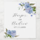 Elegant floral wedding wine bottle label featuring watercolor illustration of blue peony flowers with greenery. Perfect for a spring or summer event.