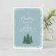 Holiday script, inviting your guests to your Christmas event! The blue-green colour is soft and muted and give a misty twilight look. The trees shown grow in a magical forest, where they become mysteriously decorated in the winter season. Start your entertaining with a thoughtful and beautiful invitation that’s focused on nature.