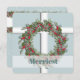 A window to the outside winter snowfall. This card has the design of a window with a Christmas wreath hanging in front. The theme continues on the back, where your messahe is in the center. I love the soft color of blue-green, along with the “window look”, and the gentle snowfall. Blessings!