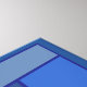 This pattern is created in the style reminiscent of Piet Mondrian. Blue shapes, squares and rectangles outlined in an ultramarine blue border. Varying shades of blue include sky blue, grey blue, and verditer blue. This abstract design focuses on form, shape and colour to evoke an emotional reaction, which speaks to our intuition, experiences and subconscious.