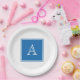 Add your initials or other text to customise this simple and modern Square Monogram Paper Plates in blue and white. These trendy and chic plates would be perfect for a simple and casual affair.