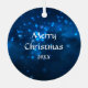 This pretty Holiday ornament features a silver silhouette American Cocker Spaniel Dog image surrounded by a blue star light night sky. The back of the ornament has the same blue background, and two text fields for you to customize. Elegant for the Cocker owner.