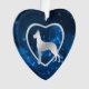 Perfect for the Dane owner, this pretty Holiday ornament features a silver silhouette Great Dane Dog image surrounded by a blue star light night sky. The image is placed within a faux jewel frame heart shape, with a corresponding star light blue border. The back of the ornament has the same blue background, and text for you to customise.