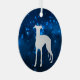 This pretty Holiday ornament features a silver silhouette Whippet Dog image surrounded by a blue star light night sky. The back of the ornament has the same blue background, and two text fields for you to customize. Elegant!