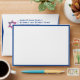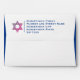 Blue Star of David envelopes suitable to use with HOLOCAUST REMEMBRANCE DAY cards and invitations. Also great to use for any Jewish celebration or occasion. Design shows a tiled pattern of coloured Star of David against a blue background on the inside, and the back top flap has another Star of David plus customisable address for you to replace with yours. On the front there is a blue border. Matching items available. Return address labels available separately.