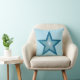 Modern design with a "shining" blue and white star on a pale blue background. Throw pillow with a customisable design for you to personalise with your own text, images and ideas. This is a digital art image created using original photographs and digital techniques and printed onto fabric, it does not shine or contain real sparkles.