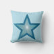 Modern design with a "shining" blue and white star on a pale blue background your choice of text on the back. Throw pillow with a customisable design for you to personalise with your own text, images and ideas. This is a digital art image created using original photographs and digital techniques and printed onto fabric, it does not shine or contain real sparkles.