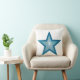 Modern design with a "shining" blue and white star on a white background your choice of text on the back. Throw pillow with a customisable design for you to personalise with your own text, images and ideas. This is a digital art image created using original photographs and digital techniques and printed onto fabric, it does not shine or contain real sparkles.