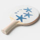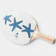 A nautical blue and white Ping Pong paddle with gradient ombre shades of blue starfish on Sandy white background. Personalise with Name and Initials on each side and always wish upon a starfish!