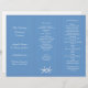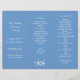 Blue tri-fold wedding program templates. Two starfish decorate this beach or summer theme ceremony program. With three areas for adding event information, use the template lines to customise for your special day. ** The blue colour will be on one side of this paper only - the reverse will be white. Shown on linen paper which may be changed.