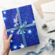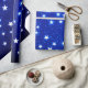 Blue starry wrapping paper. Great for the holidays, or any time.