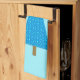 A simplified modern take on a classic Christmas tree motif towel, cerulean blue, satin textured stars on an aqua blue background