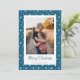 Custom blue photo Christmas cards featuring stars and a beautiful script title. Easily personalise these blue photo Christmas cards with your image and a family name.