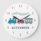 This cute "all aboard" steam train clock for boy's/kid's room/nursery features kid's name on a white background with steam train in blue and red. Personalise it for your needs. You can find matching products at my store.