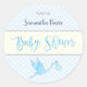 Blue Stork Baby Boy Baby Shower Classic Round Sticker