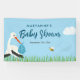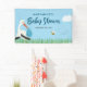 Cute customisable boy baby shower banner consists of a hand drawn stork with bees and butterflies. Blue stork makes special delivery of a baby boy. Celebrate the arrival of the new baby boy with this cute stork baby sprinkle boy sign. Personalise the banner with your text and info.