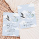 Celebrate the Mum-to-be with this whimsical stork themed boy baby shower invitation. The design features a sweet hand-drawn stoke and a blue sky with fluffy white clouds.