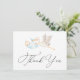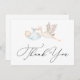Thank You card featuring an adorable watercolor illustration of a stork carrying a baby in a blue blanket. Personalise with your information or click "Click to customise further" to edit font styles, size and colours. Can also be personalised on the back with your own typed message or delete this space to handwrite your own thank you.
