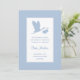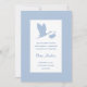 Simple but attractive blue and white birth announcement with a silhouette of a flying stork.