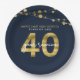 Throw a 40 Year Class Reunion and impress guests with matching paper plates. This stylish plate features strings of lights and "40" in faux gold with "year reunion" in white against a dark blue background. Check out matching invitations and items like stickers here https://www.zazzle.com/collections/school_reunion-119258151199573326?rf=238364477188679314