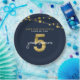Throw a Five Year Class Reunion and impress guests with matching paper plates. This stylish plate features strings of lights and "5" in faux gold with "year reunion" in white against a dark blue background. Check out matching invitations and items like stickers here https://www.zazzle.com/collections/school_reunion-119258151199573326?rf=238364477188679314