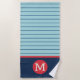 Blue Stripe Red White Monogram Masculine Beach Towel