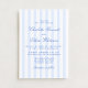 This wedding invitation features a soft blue and white vertical stripe pattern paired with elegant script typography. The classic stripe design gives the invitation a timeless and refined look, while the light blue color palette keeps it fresh and modern. The combination of clean stripes and flowing script lettering creates a balanced style that feels both traditional and modern.