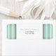 An address label featuring a blue striped background with brown trim. Personalise with your name and address. Look for matching baby shower invites and more at Jill's Paperie.