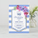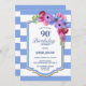 Blue Striped Floral 90th Birthday Dinner Party Invitation