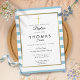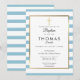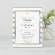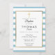 Blue Striped Gold Cross Baptism, Christening Invitation