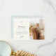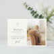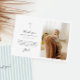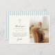 Baptism thank you card that features blue stripes and a simple blue cross on an ivory background.