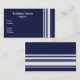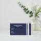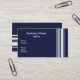 A professional looking business card with navy blue background and white pinstripes on the right. Space for your company logo if needed.