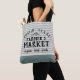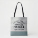 Modern farmhouse stripe farmer's market tote bag personalised with your city, family name or other custom text. Please note that the subtle linen texture is part of the printed design and the product is not made of real linen fabric. Click the Customise It button to add your own text and create your own unique one of a kind design!