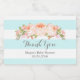 Custom text baby shower label in pretty light blue and white stripes pattern with peach pink watercolor flowers.