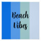 Cool blue and light green stripes pattern and a customisable text saying: Beach vibes. Fits a cheerful marine style.