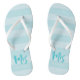 Perfect for the summer and a day at the beach, this trendy flip flops feature the word "Mrs" in blue brush script against a preppy blue stripes pattern background. It makes great gifts for newly weds or wedding anniversaries.